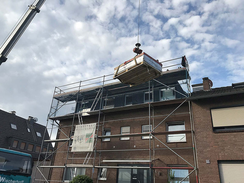 Vorbereitung für die Arbeiten an einer PV-Anlage in der Kilianstraße in Schermbeck